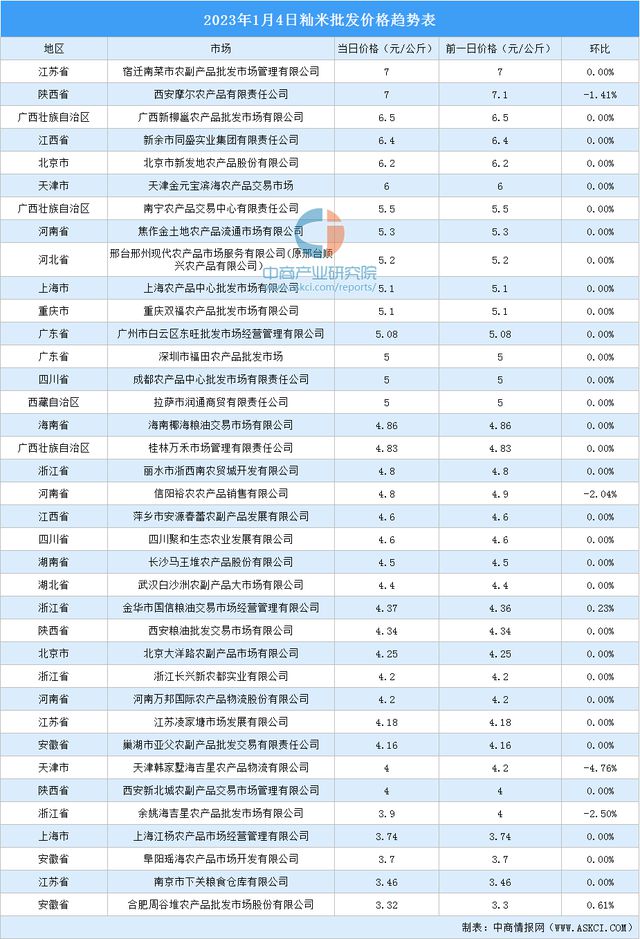 中商情報(bào)網(wǎng)訊:最新數(shù)據(jù)顯示:1月4日,全國粳米當(dāng)日均價(jià)為5.19元/公斤,秈米當(dāng)日均價(jià)為4.83元/公斤。其中,粳米價(jià)格最高的市場是位于江西省的新余市同盛實(shí)業(yè)集團(tuán)有限責(zé)任公司,當(dāng)日價(jià)格為9.3元/公斤,環(huán)比持平。秈米價(jià)格最高的市場是江蘇宿遷南菜市農(nóng)副產(chǎn)品批發(fā)市場管理有限公司和陜西西安摩爾農(nóng)產(chǎn)品有限責(zé)任公司,當(dāng)日價(jià)格均為7元/公斤。
